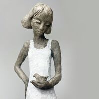 • Die Fragiliät der schlanken Mädchenfigur mit Vogelkind in der Hand sowie ihr Ausdruck in Mimik und Haltung visualisieren eindrucksvoll den geistigen Gehalt des Bildwerkes.