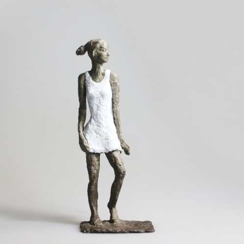 Die Werke der 1977 in Rosenheim geborene Bildhauerin Susanne Kraißer stehen in der Tradition der figürlichen Bildhauerei. Ihr Hauptgegenstand ist das klassische Sujet der Plastik und Bildhauerei: die menschliche Gestalt. Dabei konzentriert sich Kraißer auf den weiblichen Körper. In Einzelfiguren, die in Folgen (z.B. Mädchen mit Mini, seit 2011; An der Wasserkante, seit 2011; Kleine Sitzende, seit 2016) oder als singuläre Gestalt entstehen, thematisiert sie vor allem formale und wesenhafte Gegensätze wie Stabilität und Labilität oder blockhafte Masse und fragile Körperbildung. In den letzten Jahren hat Kraißer neben Einzelfiguren einige Paardarstellungen realisiert sowie Einzelfiguren mit Darstellungen von Früchten oder Blumen verbunden.Susanne Kraißers Bronzeplastiken sind klassisch und doch überraschen sie durch neue Formfindungen, neue Möglichkeiten der Präsentation sowie ihre ganz eigene Ästhetik. Kraißers bevorzugtes Material ist die Bronze, die sie unterschiedliche patiniert.
