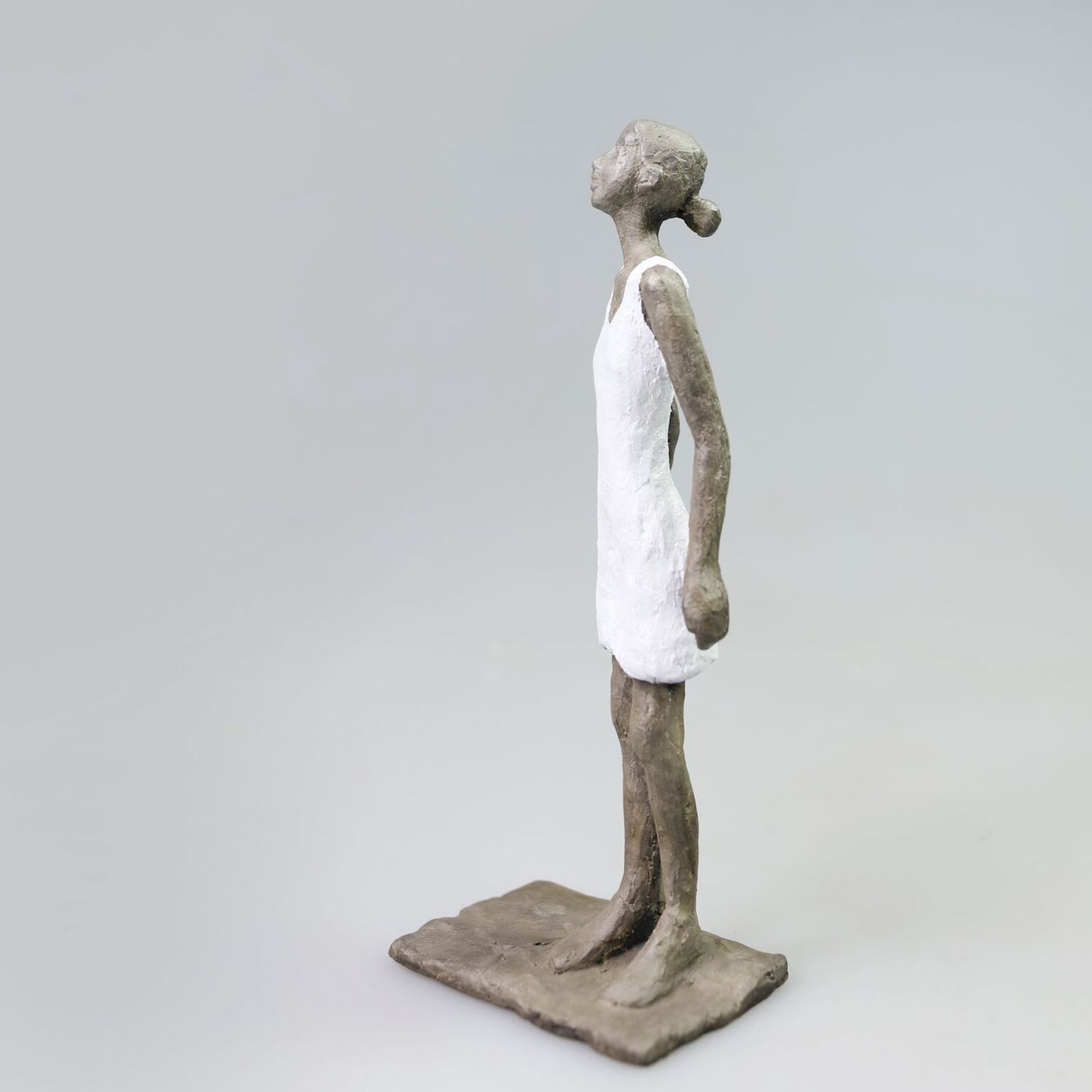 Die Werke der 1977 in Rosenheim geborene Bildhauerin Susanne Kraißer stehen in der Tradition der figürlichen Bildhauerei. Ihr Hauptgegenstand ist das klassische Sujet der Plastik und Bildhauerei: die menschliche Gestalt. Dabei konzentriert sich Kraißer auf den weiblichen Körper. In Einzelfiguren, die in Folgen (z.B. Mädchen mit Mini, seit 2011; An der Wasserkante, seit 2011; Kleine Sitzende, seit 2016) oder als singuläre Gestalt entstehen, thematisiert sie vor allem formale und wesenhafte Gegensätze wie Stabilität und Labilität oder blockhafte Masse und fragile Körperbildung. In den letzten Jahren hat Kraißer neben Einzelfiguren einige Paardarstellungen realisiert sowie Einzelfiguren mit Darstellungen von Früchten oder Blumen verbunden.Susanne Kraißers Bronzeplastiken sind klassisch und doch überraschen sie durch neue Formfindungen, neue Möglichkeiten der Präsentation sowie ihre ganz eigene Ästhetik. Kraißers bevorzugtes Material ist die Bronze, die sie unterschiedliche patiniert.