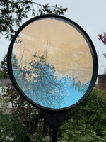 Plastic, semi-transparent concave mirror, glass, steel