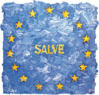 Request artwork: Bernd Schwarzer, Europe greets the world (Salute (Gold-Blue))