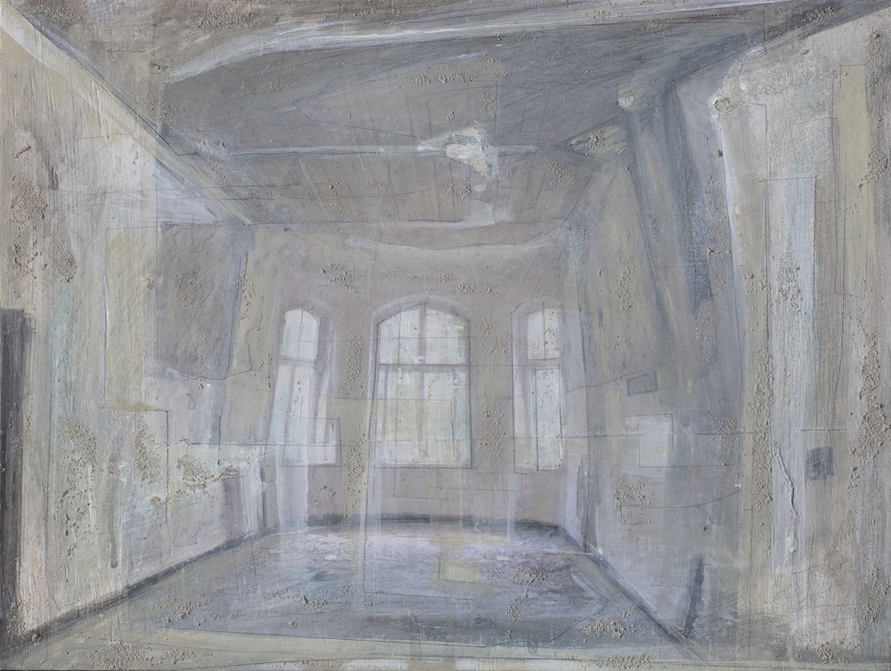 The Italian painter Daniela Gullotta deals with architecture in her works, whereby she is particularly interested in abandoned buildings that have been left to decay. Their magic and silent visualisation of the past form the inspiration and content of her works. In 2014, for example, she explored vacant buildings in Germany in a series of pictures, including the former sanatoriums in Beelitz, an abandoned, partially dilapidated sanatorium near Berlin, and the ruins of the old chemical plant in Rüdersdorf (Märkisch-Oderland). However, the artist also focusses on architecture whose function is still preserved, as in her series on Cologne Cathedral. However, she exposes it to destruction in her pictures by depicting its interior with the floor torn open. On the one hand, the artist reflects on the ongoing construction and restoration work on the cathedral, and on the other, she poses the question of its possible future in view of people's dwindling commitment to God.Gullotta focusses her artistic research primarily on the interiors of the architecture, which she initially captures in black and white photographs. Mounted on a painting surface, usually wood, she works on and expands them using various painting and drawing techniques in oil, acrylic, pencil and charcoal. Mixtures of sand and colour, fragments of canvas and gauze give the pictures a relief-like quality and emphasise that the photographic basis is secondary. In this way, the artist transforms real architecture into a fictitious one and allows the mysterious atmosphere of the abandoned buildings, steeped in the past and the generations of people who once animated them, to become tangible.