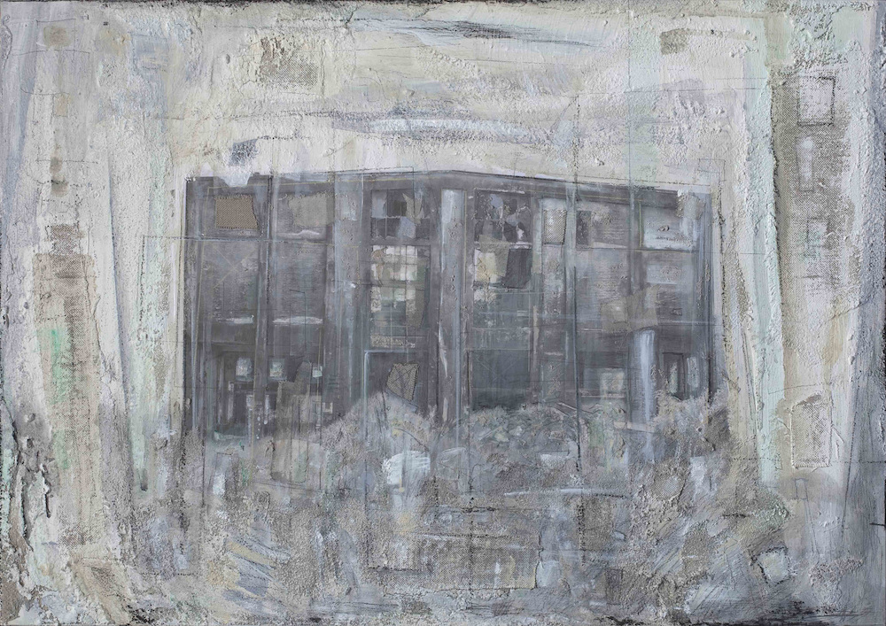 The Italian painter Daniela Gullotta deals with architecture in her works, whereby she is particularly interested in abandoned buildings that have been left to decay. Their magic and silent visualisation of the past form the inspiration and content of her works. In 2014, for example, she explored vacant buildings in Germany in a series of pictures, including the former sanatoriums in Beelitz, an abandoned, partially dilapidated sanatorium near Berlin, and the ruins of the old chemical plant in Rüdersdorf (Märkisch-Oderland). However, the artist also focusses on architecture whose function is still preserved, as in her series on Cologne Cathedral. However, she exposes it to destruction in her pictures by depicting its interior with the floor torn open. On the one hand, the artist reflects on the ongoing construction and restoration work on the cathedral, and on the other, she poses the question of its possible future in view of people's dwindling commitment to God.Gullotta focusses her artistic research primarily on the interiors of the architecture, which she initially captures in black and white photographs. Mounted on a painting surface, usually wood, she works on and expands them using various painting and drawing techniques in oil, acrylic, pencil and charcoal. Mixtures of sand and colour, fragments of canvas and gauze give the pictures a relief-like quality and emphasise that the photographic basis is secondary. In this way, the artist transforms real architecture into a fictitious one and allows the mysterious atmosphere of the abandoned buildings, steeped in the past and the generations of people who once animated them, to become tangible.