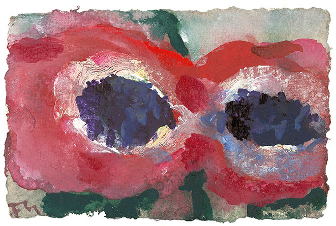 Klaus Fußmann is one of Germany's best-known contemporary painters. Since around 2000, the subjects of his oil paintings, watercolours, gouaches, pastels and prints have been primarily influenced by the landscape around Gelting in Schleswig-Holstein and the flowers in the garden he has planted there himself. Born in Velbert in the Rhineland in 1938, Fußmann first studied at the Folkwang School in Essen/Werden (1957-61), then at the Hochschule für bildende Künste Berlin (1962-66), where he held a professorship for painting from 1974-2005. From the very beginning of his artistic career, Fußmann has been interested in analysing visible reality and its phenomena. This also concerns questions of human existence. Initially, the painter chose individual human figures, interiors of his studios, rooms of abandoned flats, still lifes in the form of tables with vessels, metropolitan "landscapes" (Wannseedeponie), views from the Berlin studio window and portraits as his subjects. For a long time, Fußmann preferred grey and brown tones for the summarily depicted subjects. Fußmann's works were recognised early on: in 1971/72 his works were shown in an exhibition at the National Gallery in Berlin, in 1972 he was awarded the Villa Romana Prize, in 1973 he had a solo exhibition at the Kunstverein Darmstadt and in 1974 he was appointed professor of painting at the Hochschule für bildende Künste Berlin. Fußmann's work was given new impetus by his stays in Schleswig-Holstein in 1972, where he has lived and worked in his own house in Gelting during the summer months since 1978. The Berlin themes are now joined by the landscape of Schleswig-Holstein, into which Fußmann partly integrates his portraits and mysterious, symbolic depictions of figures. In the 1980s and 1990s, the landscape paintings, which are based on motifs from Schleswig-Holstein, still show a mood predominantly determined by dark colour tones. Important retrospective exhibitions were dedicated to the artist's work in these years (e.g. 1980 Aachen, Suermondt-Ludwig-Museum; 1982 Darmstadt, Mathildenhöhe; 1987 Schleswig, Schloss Gottdorf). Towards the end of the 1980s, the application of colour in Fußmann's oil paintings became more impasto, increasingly gaining the sculptural power and abstraction that characterise his oil paintings to this day. In terms of colour, there was a change towards lighter colours determined by visible reality, initially in watercolour and pastel and at around the same time as he became interested in depicting flowers and blossoms (around 1985). The artist first thematised these in watercolour and gouache, then also in oil paintings.From the beginning of the second millennium, the moving sea with its various shades of blue, the bright yellow rapeseed fields and vast wheat fields with farmsteads sporadically emerging from them, the colourful blooms of his flower garden form the central subjects of Fußmann's expressive, intensely coloured watercolours, gouaches, pastels and oil paintings. They all bear witness to the painter's deep connection with the natural environment of Schleswig-Holstein. When visualising it, Fußmann is particularly interested in the constant movement and changeability of nature, the ephemeral nature of its appearance: "My aim is to depict the accidental (...). The appearance only exists in this moment, then never again. I paint quickly, because only by working provisionally do I realise the fluidity of time." (1985) In the case of flowers, it is primarily the blossoms that attract him to depict them; in the landscape, it is the light of the north with its rapid changes. Klaus Fußmann works swiftly in order to be able to appropriately depict the fleeting. The colours are often mixed directly on the support rather than on the palette. This is particularly noticeable in the impasto oil paintings. In terms of colour, these are sometimes more restrained and abstract than the watercolours and gouaches, but no less expressive for that. Fußmann's pictures of the landscape and its phenomena are filled with an intense experience of nature and its changeable beauty, which is vividly communicated to the viewer in all its fullness.