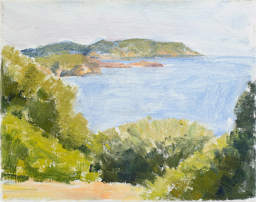 Reiner Wagner was born in Hildesheim in 1942. Coming from a family of musicians, he learnt to play the violin as a child, then the piano and sang in a boys' choir. In 1957, during a holiday on the island of Corsica, he discovered his love of painting. After finishing school, Wagner finally decided against a career as a musician and studied from 1961 to 1964, first at the Academy of Fine Arts in Munich (under Hermann Kasper) and then at the Academy of Fine Arts in Berlin. In 1965, Wagner moved to Corsica with his wife Ingrid, where he created his first landscape paintings of the Mediterranean island. After the birth of their first son, Wagner first moved to Munich, then to Lake Starnberg when their second son was born. A friendly relationship developed with Galerie Günther Franke, Munich, which represented the artist from 1972-1977, with Galerie Gunzenhauser, Munich, which exhibited Wagner from 1978-2001 and looked after his work (1996 catalogue raisonné, 1965-1995), and then from 1989 with Galerie Koch in Hanover. Wagner's first museum exhibition took place in 1979 at the Weilheim City Museum (also 1981, 1992, 2002), followed by exhibitions at the Schongau City Museum (1990, 1994). To this day, Wagner regularly shows his works at the Galerie Koch in Hanover. - Wagner's work includes oil paintings, watercolours and woodcuts of landscapes and still lifes. His landscapes always reflect his living environment, on the one hand the Bavarian Alpine foothills from Lake Starnberg southwards towards the towns of Iffeldorf, Kochel, Murnau with their lakes, moors and the Bavarian Alps, from the Walchensee mountains and Walchensee via Krün, Wallgau to the Karwendel mountains, and on the other hand the western Corsican, Mediterranean mountain landscape with the sea, which the painter still visits in the summer months. Wagner's landscapes, although orientated towards visible reality, are by no means vedute, but reduce the nature seen to its essential forms, reflecting its atmospheric mood as well as the painter's own experience, his dialogue with nature. Wagner's landscapes often consist of clearly separated landscape zones, sometimes layered parallel to one another in the painting. The colour palette is reduced to a few colours, even concentrating on just one colour in various shades of light and dark (e.g. Walchensee pictures). The renunciation of details, the tendency to combine diversity into a few large areas and the reduction of the richness of colour simplify and abstract the natural model, allowing the eye to linger. Impressions such as seriousness, calm, inwardness, loneliness, emptiness, but also cheerfulness and clarity are part of his landscape paintings.Although people are absent from Reiner Wagner's landscapes, he does not show unspoilt nature. Paths, barns, farmsteads and boathouses, which the artist reduces to their basic forms, bear witness to the presence of man. With their red, orange-red, blue or violet colouring, the roofs of the barns often form a clear colour accent in the composition, sometimes complementing the green of the flora or the blue of the sky and the mountains; a creative intervention in the topographically given, which underlines the fact that Wagner's landscape paintings are not an image of what he has seen, but a mental processing of what he has seen. This also characterises Wagner's still lifes, which show objects from his immediate living and working environment: Cups, bowls and plates, fruit, individual flowers in often glass vessels as well as the painter's working materials, paint tubes, chalks, paint tins and brushes. The creative impulse is usually triggered by a random constellation of these objects, but his still lifes are also strictly composed and characterised by the same asceticism as his landscape paintings. Only a few objects occupy the compositions; they are displayed in an intimate, spaceless manner. The viewer's gaze can rest entirely on the individual objects; their presentation surfaces and the background are usually almost monochrome. The outlines of the slightly abstractly depicted objects are firm and clearly contoured, their colours bright, detached from the original colour of the object and set in relation to the colour tones of the surface and background. It is clear that Wagner does not strive for mimesis in his still lifes either, but instead achieves a different, new creation by mentally processing what he has seen. It is not without reason that a conversation with Reiner Wagner in 2006 was introduced with Johann Wolfgang von Goethe's aphorism: "Art: another nature, also mysterious, but more comprehensible; for it springs from the mind."