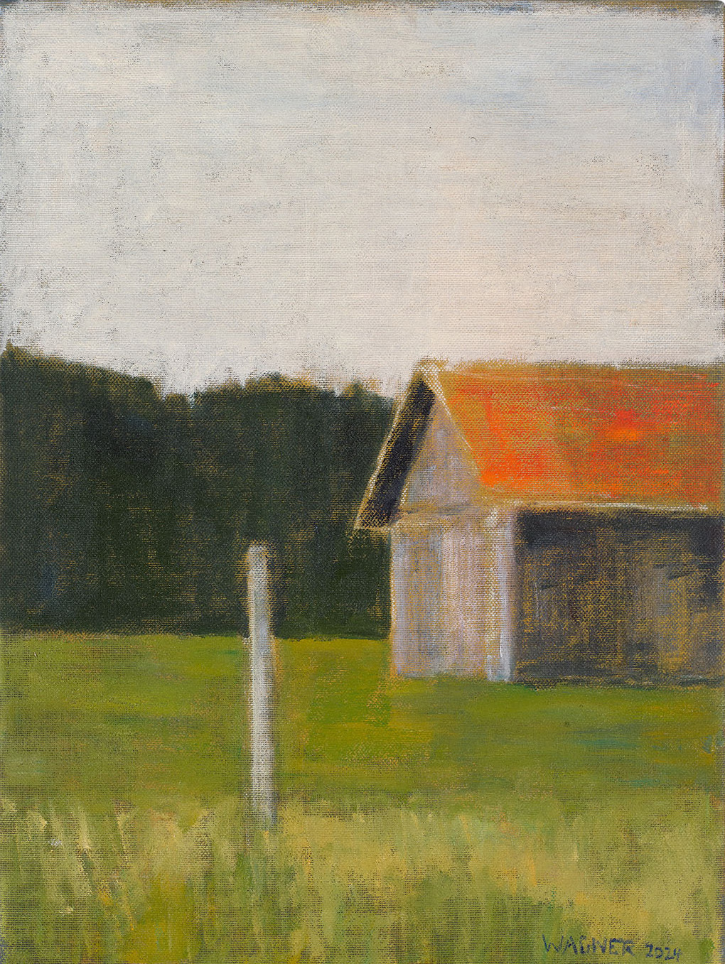 Reiner Wagner was born in Hildesheim in 1942. Coming from a family of musicians, he learnt to play the violin as a child, then the piano and sang in a boys' choir. In 1957, during a holiday on the island of Corsica, he discovered his love of painting. After finishing school, Wagner finally decided against a career as a musician and studied from 1961 to 1964, first at the Academy of Fine Arts in Munich (under Hermann Kasper) and then at the Academy of Fine Arts in Berlin. In 1965, Wagner moved to Corsica with his wife Ingrid, where he created his first landscape paintings of the Mediterranean island. After the birth of their first son, Wagner first moved to Munich, then to Lake Starnberg when their second son was born. A friendly relationship developed with Galerie Günther Franke, Munich, which represented the artist from 1972-1977, with Galerie Gunzenhauser, Munich, which exhibited Wagner from 1978-2001 and looked after his work (1996 catalogue raisonné, 1965-1995), and then from 1989 with Galerie Koch in Hanover. Wagner's first museum exhibition took place in 1979 at the Weilheim City Museum (also 1981, 1992, 2002), followed by exhibitions at the Schongau City Museum (1990, 1994). To this day, Wagner regularly shows his works at the Galerie Koch in Hanover. - Wagner's work includes oil paintings, watercolours and woodcuts of landscapes and still lifes. His landscapes always reflect his living environment, on the one hand the Bavarian Alpine foothills from Lake Starnberg southwards towards the towns of Iffeldorf, Kochel, Murnau with their lakes, moors and the Bavarian Alps, from the Walchensee mountains and Walchensee via Krün, Wallgau to the Karwendel mountains, and on the other hand the western Corsican, Mediterranean mountain landscape with the sea, which the painter still visits in the summer months. Wagner's landscapes, although orientated towards visible reality, are by no means vedute, but reduce the nature seen to its essential forms, reflecting its atmospheric mood as well as the painter's own experience, his dialogue with nature. Wagner's landscapes often consist of clearly separated landscape zones, sometimes layered parallel to one another in the painting. The colour palette is reduced to a few colours, even concentrating on just one colour in various shades of light and dark (e.g. Walchensee pictures). The renunciation of details, the tendency to combine diversity into a few large areas and the reduction of the richness of colour simplify and abstract the natural model, allowing the eye to linger. Impressions such as seriousness, calm, inwardness, loneliness, emptiness, but also cheerfulness and clarity are part of his landscape paintings.Although people are absent from Reiner Wagner's landscapes, he does not show unspoilt nature. Paths, barns, farmsteads and boathouses, which the artist reduces to their basic forms, bear witness to the presence of man. With their red, orange-red, blue or violet colouring, the roofs of the barns often form a clear colour accent in the composition, sometimes complementing the green of the flora or the blue of the sky and the mountains; a creative intervention in the topographically given, which underlines the fact that Wagner's landscape paintings are not an image of what he has seen, but a mental processing of what he has seen. This also characterises Wagner's still lifes, which show objects from his immediate living and working environment: Cups, bowls and plates, fruit, individual flowers in often glass vessels as well as the painter's working materials, paint tubes, chalks, paint tins and brushes. The creative impulse is usually triggered by a random constellation of these objects, but his still lifes are also strictly composed and characterised by the same asceticism as his landscape paintings. Only a few objects occupy the compositions; they are displayed in an intimate, spaceless manner. The viewer's gaze can rest entirely on the individual objects; their presentation surfaces and the background are usually almost monochrome. The outlines of the slightly abstractly depicted objects are firm and clearly contoured, their colours bright, detached from the original colour of the object and set in relation to the colour tones of the surface and background. It is clear that Wagner does not strive for mimesis in his still lifes either, but instead achieves a different, new creation by mentally processing what he has seen. It is not without reason that a conversation with Reiner Wagner in 2006 was introduced with Johann Wolfgang von Goethe's aphorism: "Art: another nature, also mysterious, but more comprehensible; for it springs from the mind."