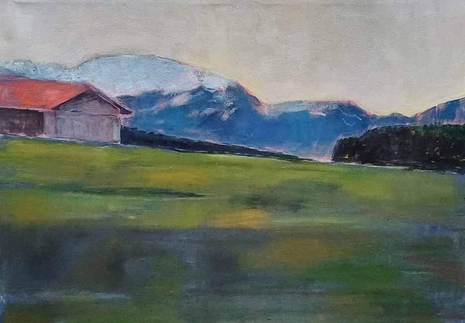 Reiner Wagner was born in Hildesheim in 1942. Coming from a family of musicians, he learnt to play the violin as a child, then the piano and sang in a boys' choir. In 1957, during a holiday on the island of Corsica, he discovered his love of painting. After finishing school, Wagner finally decided against a career as a musician and studied from 1961 to 1964, first at the Academy of Fine Arts in Munich (under Hermann Kasper) and then at the Academy of Fine Arts in Berlin. In 1965, Wagner moved to Corsica with his wife Ingrid, where he created his first landscape paintings of the Mediterranean island. After the birth of their first son, Wagner first moved to Munich, then to Lake Starnberg when their second son was born. A friendly relationship developed with Galerie Günther Franke, Munich, which represented the artist from 1972-1977, with Galerie Gunzenhauser, Munich, which exhibited Wagner from 1978-2001 and looked after his work (1996 catalogue raisonné, 1965-1995), and then from 1989 with Galerie Koch in Hanover. Wagner's first museum exhibition took place in 1979 at the Weilheim City Museum (also 1981, 1992, 2002), followed by exhibitions at the Schongau City Museum (1990, 1994). To this day, Wagner regularly shows his works at the Galerie Koch in Hanover. - Wagner's work includes oil paintings, watercolours and woodcuts of landscapes and still lifes. His landscapes always reflect his living environment, on the one hand the Bavarian Alpine foothills from Lake Starnberg southwards towards the towns of Iffeldorf, Kochel, Murnau with their lakes, moors and the Bavarian Alps, from the Walchensee mountains and Walchensee via Krün, Wallgau to the Karwendel mountains, and on the other hand the western Corsican, Mediterranean mountain landscape with the sea, which the painter still visits in the summer months. Wagner's landscapes, although orientated towards visible reality, are by no means vedute, but reduce the nature seen to its essential forms, reflecting its atmospheric mood as well as the painter's own experience, his dialogue with nature. Wagner's landscapes often consist of clearly separated landscape zones, sometimes layered parallel to one another in the painting. The colour palette is reduced to a few colours, even concentrating on just one colour in various shades of light and dark (e.g. Walchensee pictures). The renunciation of details, the tendency to combine diversity into a few large areas and the reduction of the richness of colour simplify and abstract the natural model, allowing the eye to linger. Impressions such as seriousness, calm, inwardness, loneliness, emptiness, but also cheerfulness and clarity are part of his landscape paintings.Although people are absent from Reiner Wagner's landscapes, he does not show unspoilt nature. Paths, barns, farmsteads and boathouses, which the artist reduces to their basic forms, bear witness to the presence of man. With their red, orange-red, blue or violet colouring, the roofs of the barns often form a clear colour accent in the composition, sometimes complementing the green of the flora or the blue of the sky and the mountains; a creative intervention in the topographically given, which underlines the fact that Wagner's landscape paintings are not an image of what he has seen, but a mental processing of what he has seen. This also characterises Wagner's still lifes, which show objects from his immediate living and working environment: Cups, bowls and plates, fruit, individual flowers in often glass vessels as well as the painter's working materials, paint tubes, chalks, paint tins and brushes. The creative impulse is usually triggered by a random constellation of these objects, but his still lifes are also strictly composed and characterised by the same asceticism as his landscape paintings. Only a few objects occupy the compositions; they are displayed in an intimate, spaceless manner. The viewer's gaze can rest entirely on the individual objects; their presentation surfaces and the background are usually almost monochrome. The outlines of the slightly abstractly depicted objects are firm and clearly contoured, their colours bright, detached from the original colour of the object and set in relation to the colour tones of the surface and background. It is clear that Wagner does not strive for mimesis in his still lifes either, but instead achieves a different, new creation by mentally processing what he has seen. It is not without reason that a conversation with Reiner Wagner in 2006 was introduced with Johann Wolfgang von Goethe's aphorism: "Art: another nature, also mysterious, but more comprehensible; for it springs from the mind."