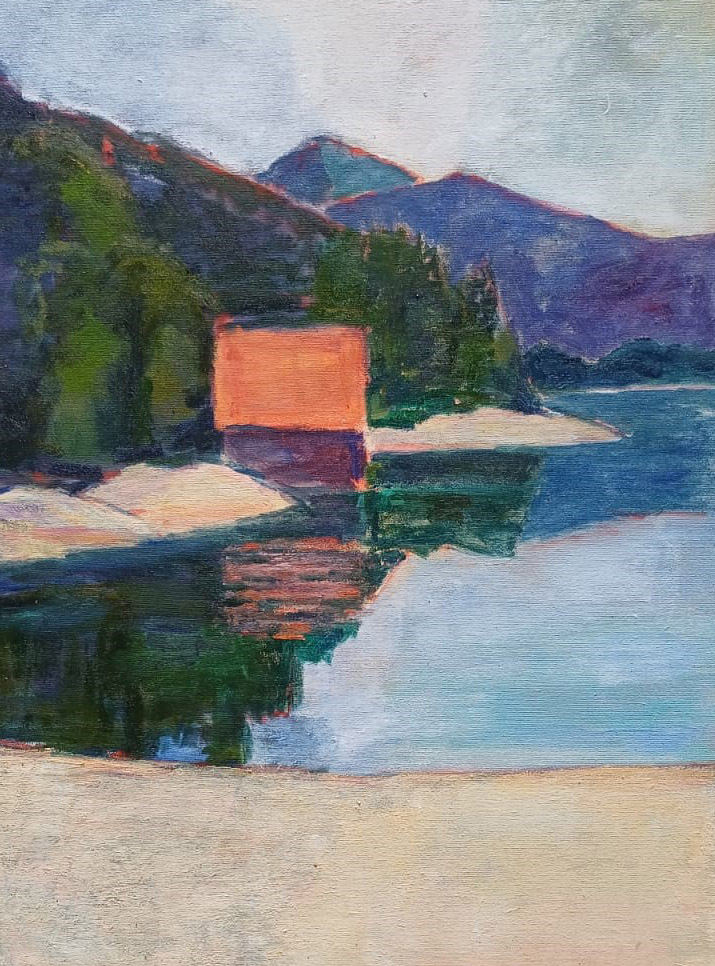 Reiner Wagner was born in Hildesheim in 1942. Coming from a family of musicians, he learnt to play the violin as a child, then the piano and sang in a boys' choir. In 1957, during a holiday on the island of Corsica, he discovered his love of painting. After finishing school, Wagner finally decided against a career as a musician and studied from 1961 to 1964, first at the Academy of Fine Arts in Munich (under Hermann Kasper) and then at the Academy of Fine Arts in Berlin. In 1965, Wagner moved to Corsica with his wife Ingrid, where he created his first landscape paintings of the Mediterranean island. After the birth of their first son, Wagner first moved to Munich, then to Lake Starnberg when their second son was born. A friendly relationship developed with Galerie Günther Franke, Munich, which represented the artist from 1972-1977, with Galerie Gunzenhauser, Munich, which exhibited Wagner from 1978-2001 and looked after his work (1996 catalogue raisonné, 1965-1995), and then from 1989 with Galerie Koch in Hanover. Wagner's first museum exhibition took place in 1979 at the Weilheim City Museum (also 1981, 1992, 2002), followed by exhibitions at the Schongau City Museum (1990, 1994). To this day, Wagner regularly shows his works at the Galerie Koch in Hanover. - Wagner's work includes oil paintings, watercolours and woodcuts of landscapes and still lifes. His landscapes always reflect his living environment, on the one hand the Bavarian Alpine foothills from Lake Starnberg southwards towards the towns of Iffeldorf, Kochel, Murnau with their lakes, moors and the Bavarian Alps, from the Walchensee mountains and Walchensee via Krün, Wallgau to the Karwendel mountains, and on the other hand the western Corsican, Mediterranean mountain landscape with the sea, which the painter still visits in the summer months. Wagner's landscapes, although orientated towards visible reality, are by no means vedute, but reduce the nature seen to its essential forms, reflecting its atmospheric mood as well as the painter's own experience, his dialogue with nature. Wagner's landscapes often consist of clearly separated landscape zones, sometimes layered parallel to one another in the painting. The colour palette is reduced to a few colours, even concentrating on just one colour in various shades of light and dark (e.g. Walchensee pictures). The renunciation of details, the tendency to combine diversity into a few large areas and the reduction of the richness of colour simplify and abstract the natural model, allowing the eye to linger. Impressions such as seriousness, calm, inwardness, loneliness, emptiness, but also cheerfulness and clarity are part of his landscape paintings.Although people are absent from Reiner Wagner's landscapes, he does not show unspoilt nature. Paths, barns, farmsteads and boathouses, which the artist reduces to their basic forms, bear witness to the presence of man. With their red, orange-red, blue or violet colouring, the roofs of the barns often form a clear colour accent in the composition, sometimes complementing the green of the flora or the blue of the sky and the mountains; a creative intervention in the topographically given, which underlines the fact that Wagner's landscape paintings are not an image of what he has seen, but a mental processing of what he has seen. This also characterises Wagner's still lifes, which show objects from his immediate living and working environment: Cups, bowls and plates, fruit, individual flowers in often glass vessels as well as the painter's working materials, paint tubes, chalks, paint tins and brushes. The creative impulse is usually triggered by a random constellation of these objects, but his still lifes are also strictly composed and characterised by the same asceticism as his landscape paintings. Only a few objects occupy the compositions; they are displayed in an intimate, spaceless manner. The viewer's gaze can rest entirely on the individual objects; their presentation surfaces and the background are usually almost monochrome. The outlines of the slightly abstractly depicted objects are firm and clearly contoured, their colours bright, detached from the original colour of the object and set in relation to the colour tones of the surface and background. It is clear that Wagner does not strive for mimesis in his still lifes either, but instead achieves a different, new creation by mentally processing what he has seen. It is not without reason that a conversation with Reiner Wagner in 2006 was introduced with Johann Wolfgang von Goethe's aphorism: "Art: another nature, also mysterious, but more comprehensible; for it springs from the mind."