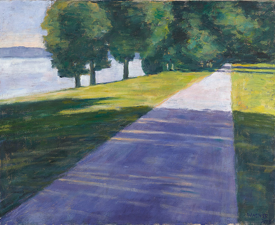 Lake Starnberg is one of the motifs that inspire Reiner Wagner to create ever new compositions. The focus is predominantly on the eastern shore, where the artist lives. Due to their divergent compositions, the choice of colours, the changing light conditions as well as the time of day and seasons, Wagner's pictorial inventions are nevertheless of great variety, which corresponds to the richness and diversity of nature: "Nature is inexhaustible," says Reiner Wagner: "You can (...) take the same path again and again, (...) see the same houses, the same wooded areas and the same shore on Lake Starnberg - and yet it is always different."