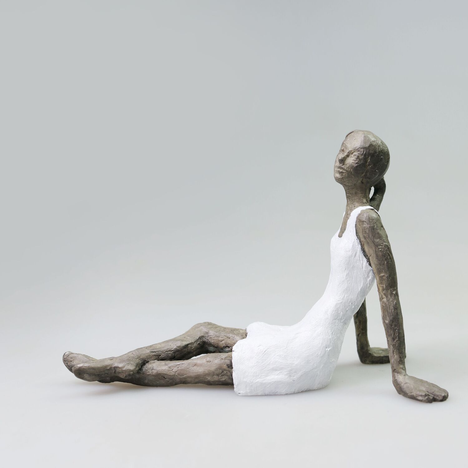 The works of the sculptor Susanne Kraißer, born in Rosenheim in 1977, are in the tradition of figurative sculpture. Her main subject is the classical subject of sculpture and sculpture: the human figure. Kraißer concentrates on the female body. In individual figures, created in series (e.g. Mädchen mit Mini, since 2011; An der Wasserkante, since 2011; Kleine Sitzende, since 2016) or as a singular figure, she primarily thematises formal and essential contrasts such as stability and instability or block-like mass and fragile body formation. In recent years, Kraißer has realised several couple depictions as well as individual figures combined with depictions of fruit or flowers.Susanne Kraißer's bronze sculptures are classic and yet they surprise with new formal inventions, new possibilities of presentation and their very own aesthetics. Kraißer's favourite material is bronze, which she patinates in different ways.